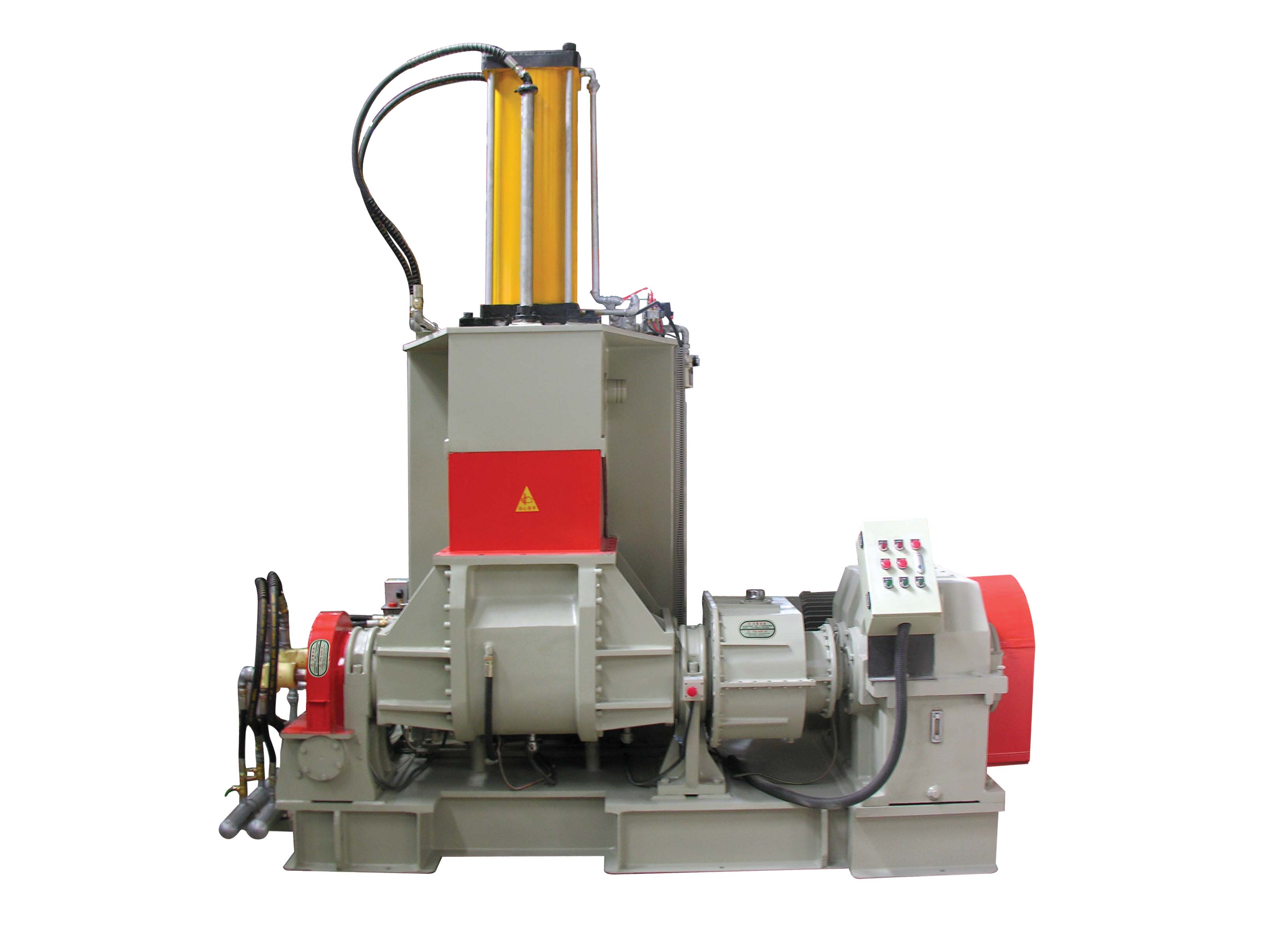 1.結(jié)構(gòu):使用蝸輪式結(jié)構(gòu)做混煉室傾轉(zhuǎn)卸料。